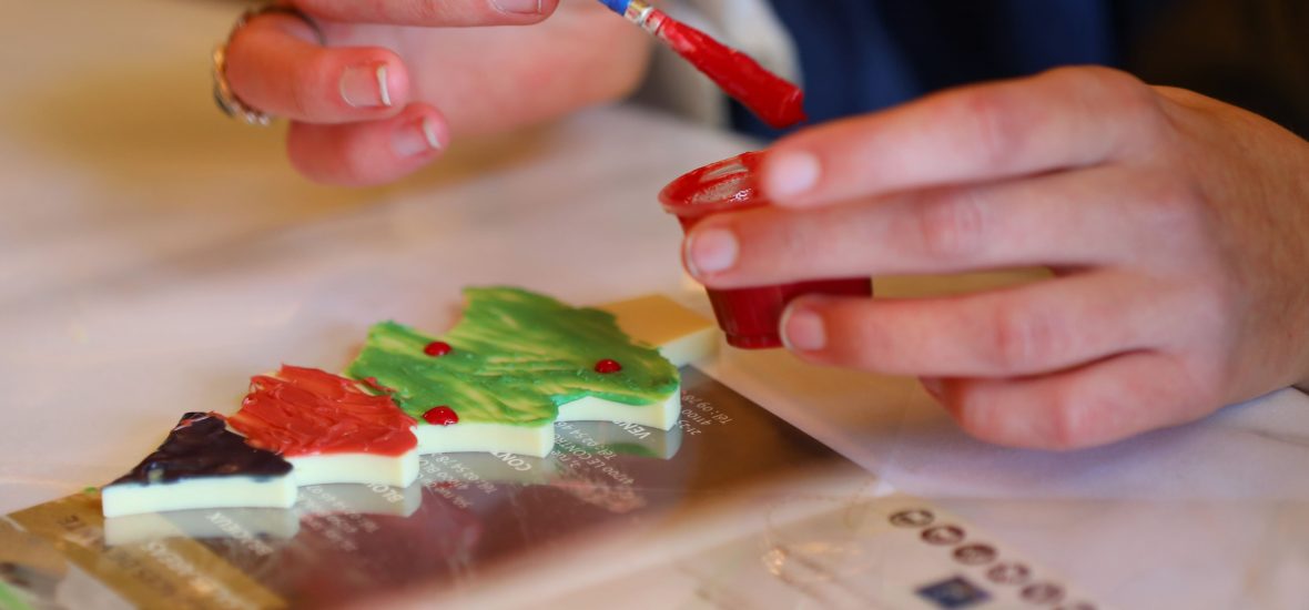 Children will be invited to paint chocolate plaques in the shape of Christmas trees or Santa Claus using cocoa butter-based paint and food coloring. They will be able to take their creations home with them.