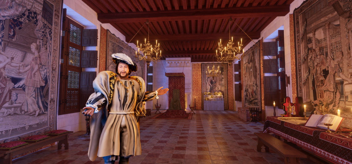 À chaque étape, le roi François Ier est votre guide et vous accompagne à travers des contenus immersifs et interactifs accompagnés d’audio qui donnent vie au monument.