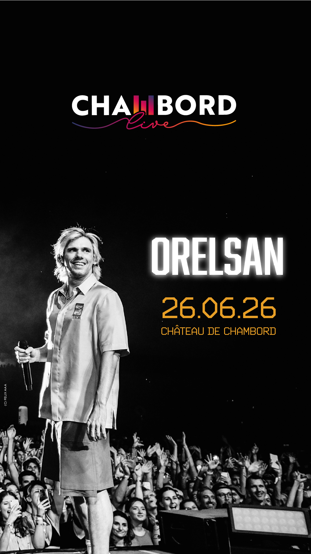 Après Sting en 2022, Imagine Dragons en 2023 et David Guetta en 2024, Black Eyed Peas en 2025, c’est Orelsan qui se produira sur la scène de Chambord Live le 26 juin 2026.