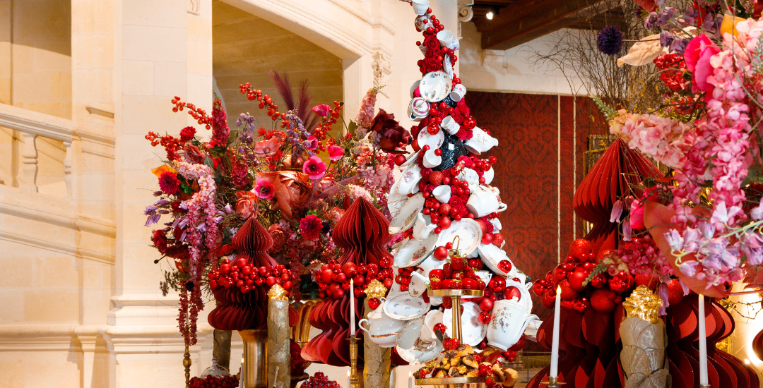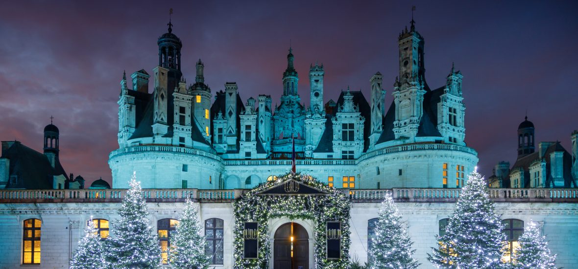 En quittant les lieux à la nuit tombée, les façades du château se parent d’une couleur unique pour Noël tandis que les ifs des jardins à la française s’illuminent délicatement offrant une dernière note douce et lumineuse à ce bel après-midi.