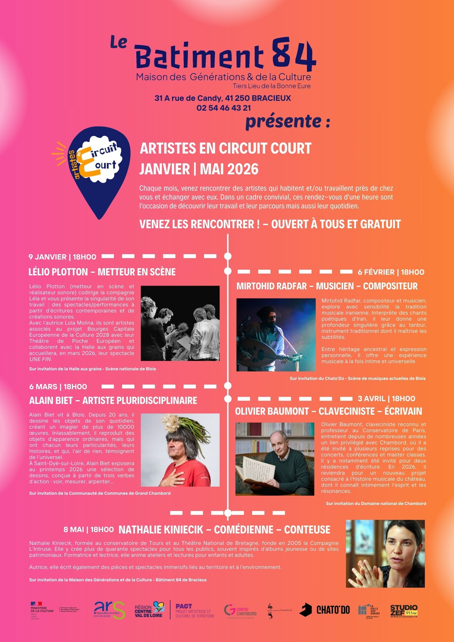 Artiste ayant entretenu, au cours des deux dernières décennies, le lien le plus étroit avec la programmation culturelle du domaine – et détenant le record absolu de séjours au château –, Olivier Baumont évoquera, lors de cette rencontre, son rapport privilégié à Chambord, lieu d’inspiration, et à son territoire. Le 03 avril à 18h.